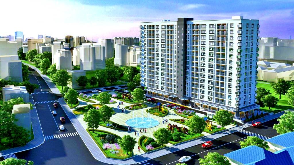 Dự án gồm 1 block chung cư cao 15 tầng nổi, 1 tầng lửng và 1 tầng hầm đỗ xe. Hệ thống giao thông nội bộ bao gồm 4 thang máy tốc độ cao, 3 thang bộ và 2 thang cuốn từ tầng trệt lên tầng 2. Tầng trệt được bố trí làm phòng sinh hoạt cộng đồng, Ban Quản lý và trường mầm non – điểm khác biệt so với nhiều chung cư thương mại khác thường dành tầng trệt cho shophouse kinh doanh. Tầng lửng bố trí khu văn phòng cho thuê.