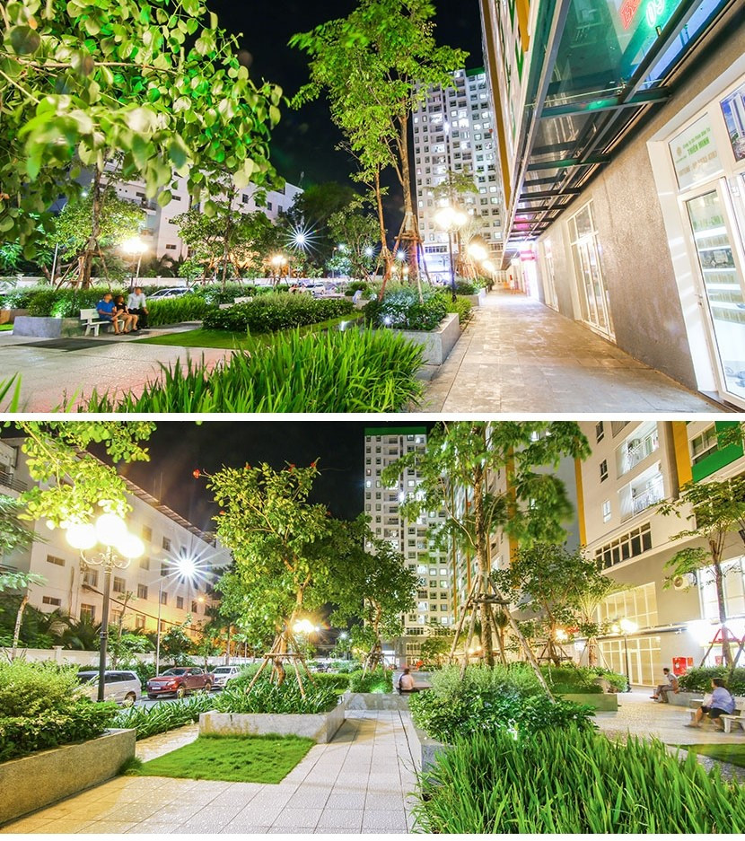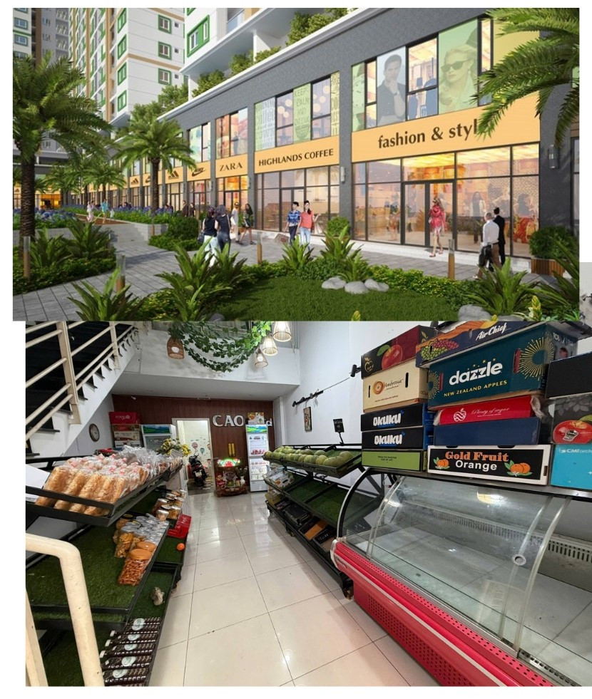 Tầng trệt dự án được quy hoạch làm khu thương mại dịch vụ với 37 căn shophouse, trung tâm thương mại 702 m² và nhà trẻ 556 m², đáp ứng đầy đủ nhu cầu mua sắm, ăn uống và chăm sóc trẻ em ngay dưới chân tòa nhà. Hệ thống 2 tầng hầm rộng rãi đảm bảo chỗ đỗ xe cho toàn bộ cư dân, kèm theo hệ thống an ninh giám sát 24/7.
