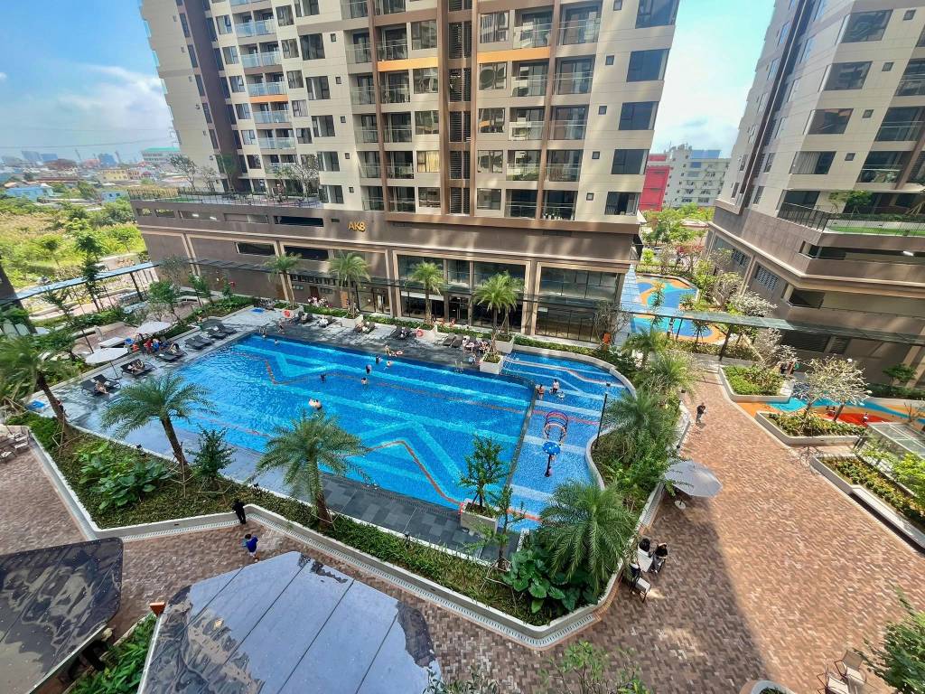 Block AK8 tầng 4 có 15 căn hộ/sàn, đánh số từ 1-16 (không có số 13). Cơ cấu sản phẩm: 4 căn 2PN-1WC (60-63 m²) tại vị trí 01, 07, 08, 09; 9 căn 2PN-2WC chia thành 2 nhóm: 7 căn (78-81 m²) và 2 căn góc (84-89 m²) tại vị trí 10, 12; 2 căn 3PN-2WC (92-99 m²) tại vị trí góc 11 và 16. Đặc biệt, tầng 4 có khu sân vườn và hồ bơi cảnh quan ngay cạnh các căn 06-09. Block được trang bị 5 thang máy chở khách, 1 thang hàng và 2 thang bộ.