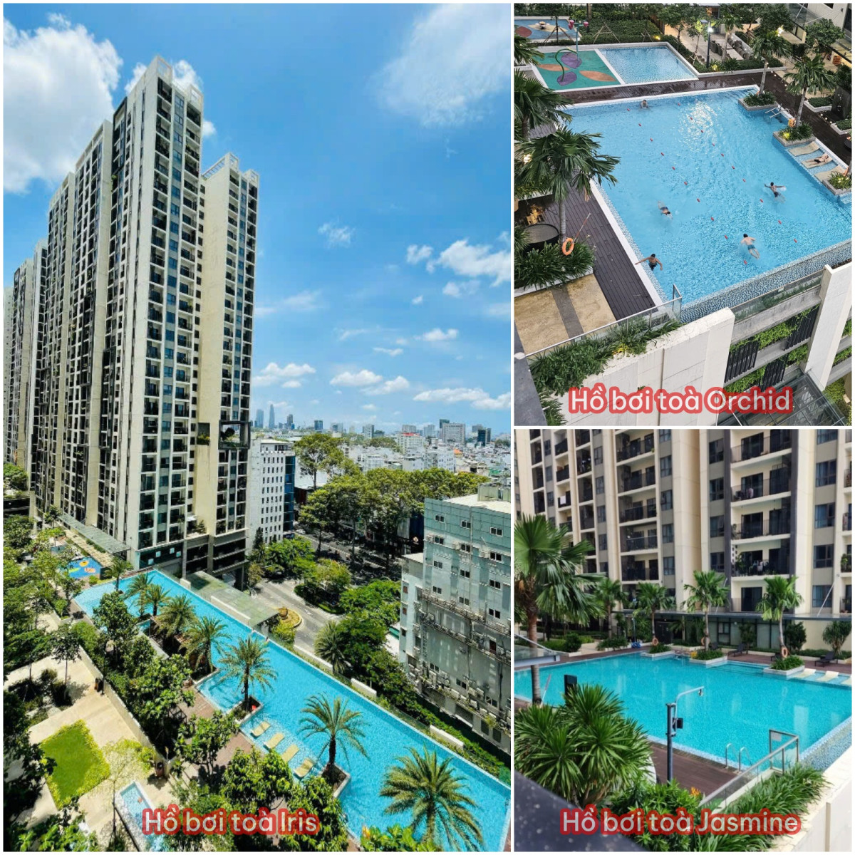 Mỗi cụm tòa tháp (Orchid, Jasmine, Iris) đều sở hữu hệ thống tiện ích riêng biệt, đảm bảo mật độ sử dụng thấp và trải nghiệm riêng tư cho cư dân. Nổi bật là 3 hồ bơi tràn bờ, trường mầm non quốc tế, khu thương mại shophouse với hàng chục thương hiệu và hệ thống bãi đậu xe 1.688 chỗ ô tô + 5.034 chỗ xe máy.