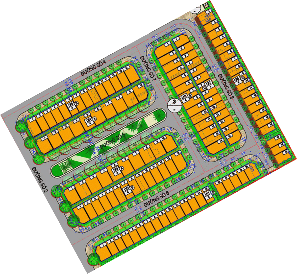 LK7, LK8: Diện tích 5.5 x 11m, gồm 33 căn.